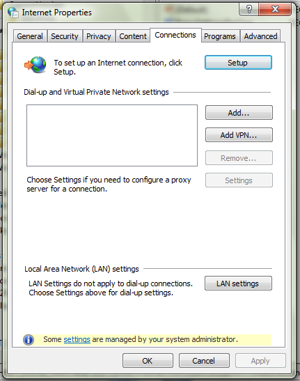 Recently on appointments in both Escondido and Del Mar in San Diego, we've noticed a new trick that's made it a little more difficult to remove: You'll see a highlighted message at the bottom of Internet Properties stating, “Some settings are managed by your system administrator.” But, wait… this is a home computer, and the user is the system administrator.