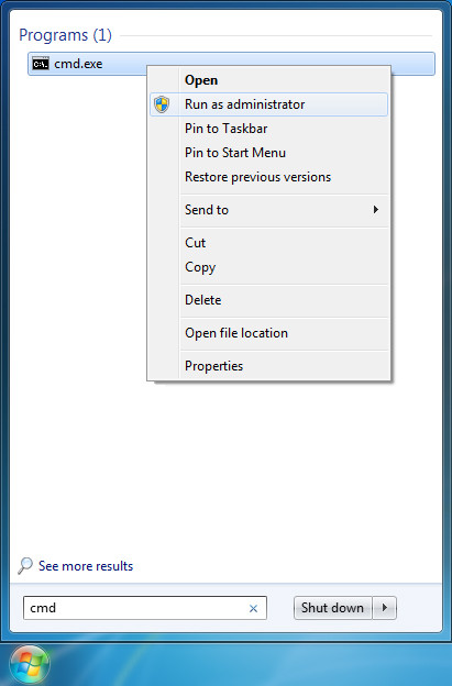 IMPORTANT: To open “cmd” properly, you need to right-click and select “run as administrator.” This is the same in Windows 7 and 8.