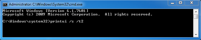 Once the old 1960's Command Prompt comes up, type in “printui /s /t2” just like you see here: