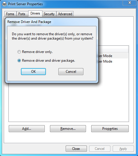 What you're looking for is brand names like HP, Brother, Canon, Ricoh, etc. whatever looks like it came from old printers. After you click “remove…” you need to check the box that says "Remove driver and driver package"