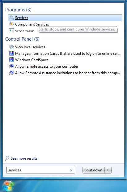 After removing everything you can from the above locations, open the start menu again and search for “services.”